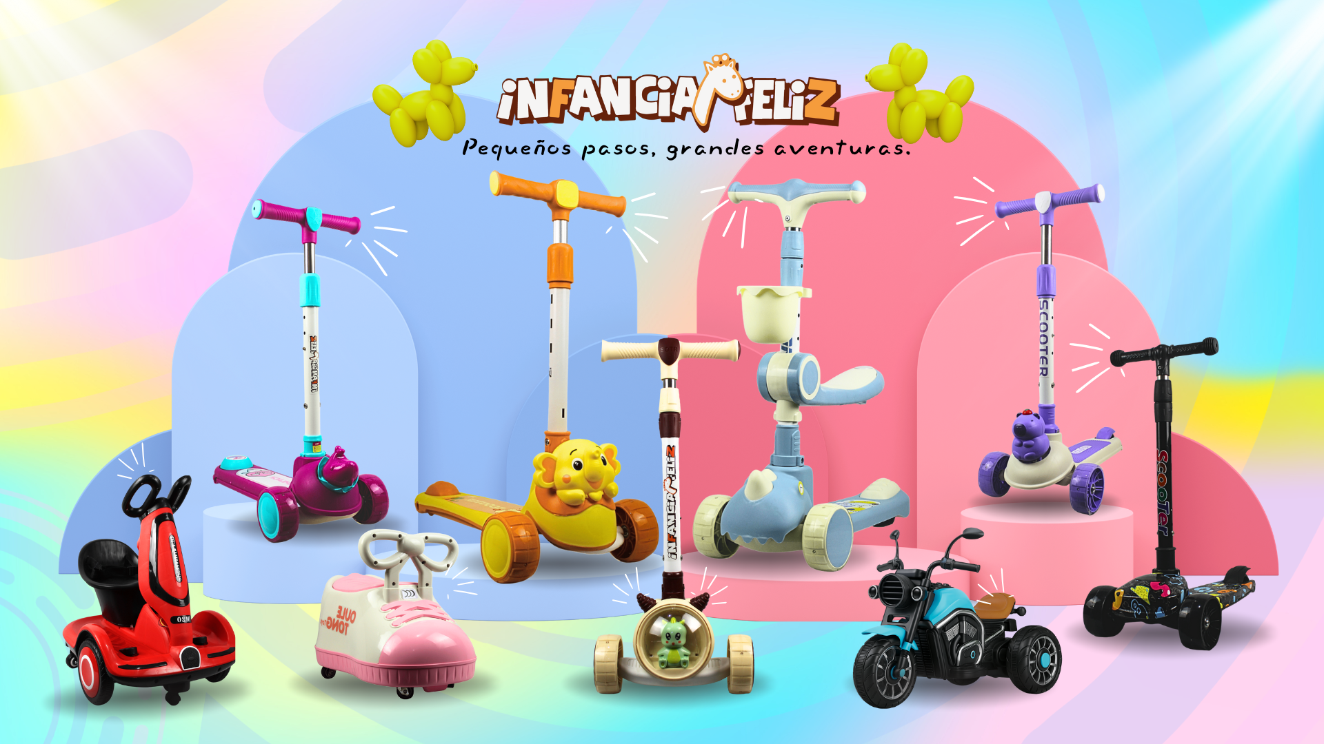 Tenemos una amplia variedad de SCOOTER, PATINES Y TRICICLOS para desarrollar cada etapa de crecimiento, desde el primer año hasta los 13 años.